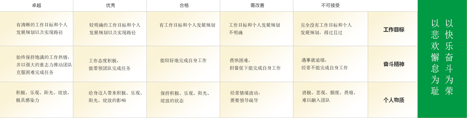 激情、誠信、創(chuàng)新、包容、擔(dān)當(dāng)!